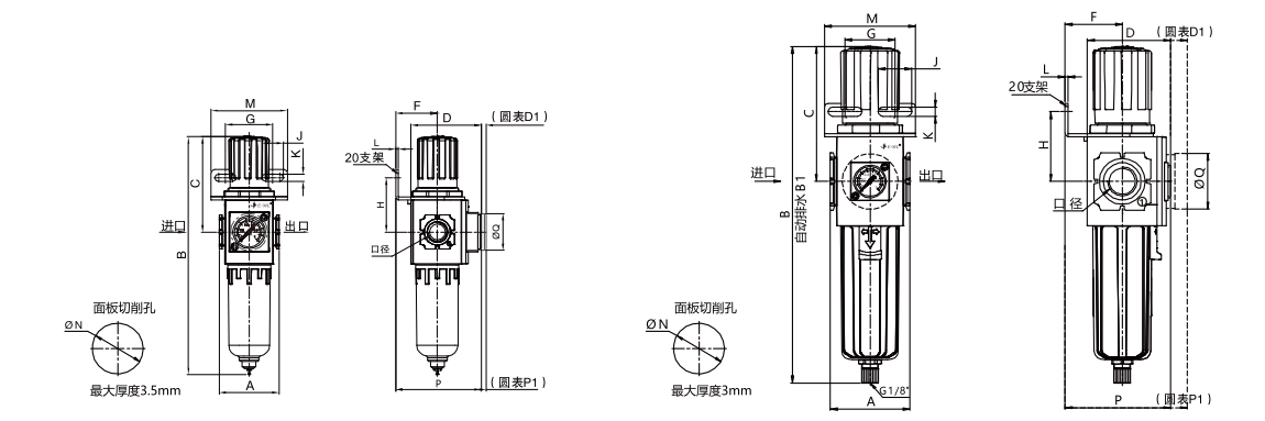 型號 接管口徑 A B B1 C D D1 F G H J K L M N P P1 Q