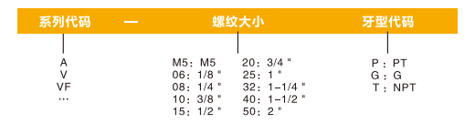 訂貨舉例:A系列消聲器,接管口徑為G1/8",G牙,其ERP編碼為:A-06S1G