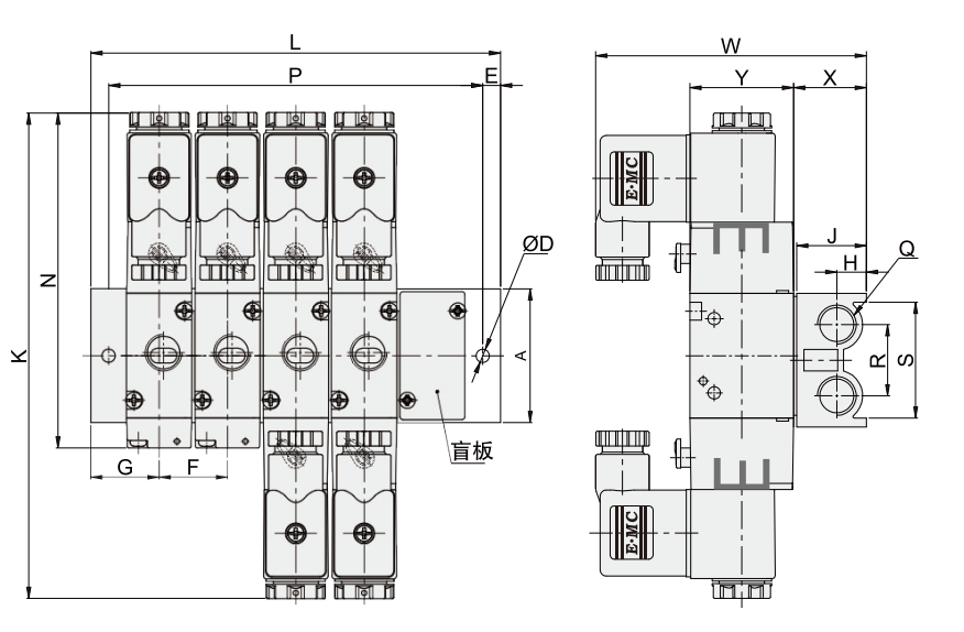 配二位三通,2系列閥體的匯流板,5連,其ERP編碼為:V322-5F訂購2系列閥體大小的盲板,其ERP編碼為:VBP322