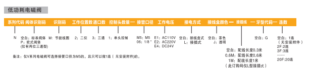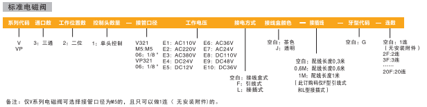 訂貨舉例:N系列電磁閥,標(biāo)準(zhǔn)閥體,標(biāo)準(zhǔn)先導(dǎo)加節(jié)能線(xiàn)圈,二位三通,單頭控制,接管口徑為1/8,DC24V,接線(xiàn)盒式,G牙,2連。其ERP編碼為:NM231-06E4-2F