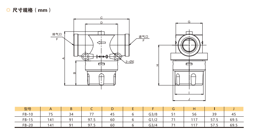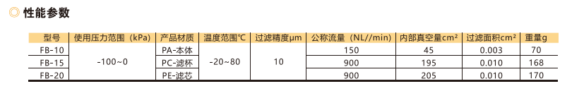 訂貨舉例:FB系列真空過濾器,G3/8內(nèi)螺紋,濾芯材質(zhì)PE。其訂購碼為:FB-10